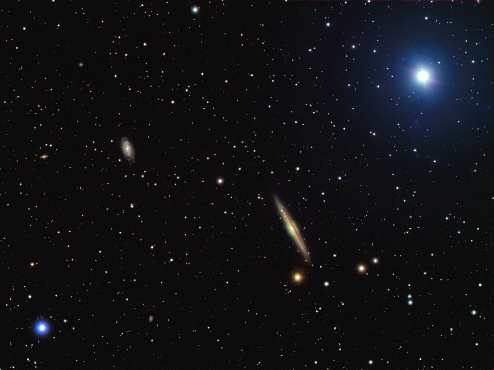 Galaxies NGC 5740 (left center) and NGC 5746 (right of center) are a pair of spiral galaxies, at a distance of 60