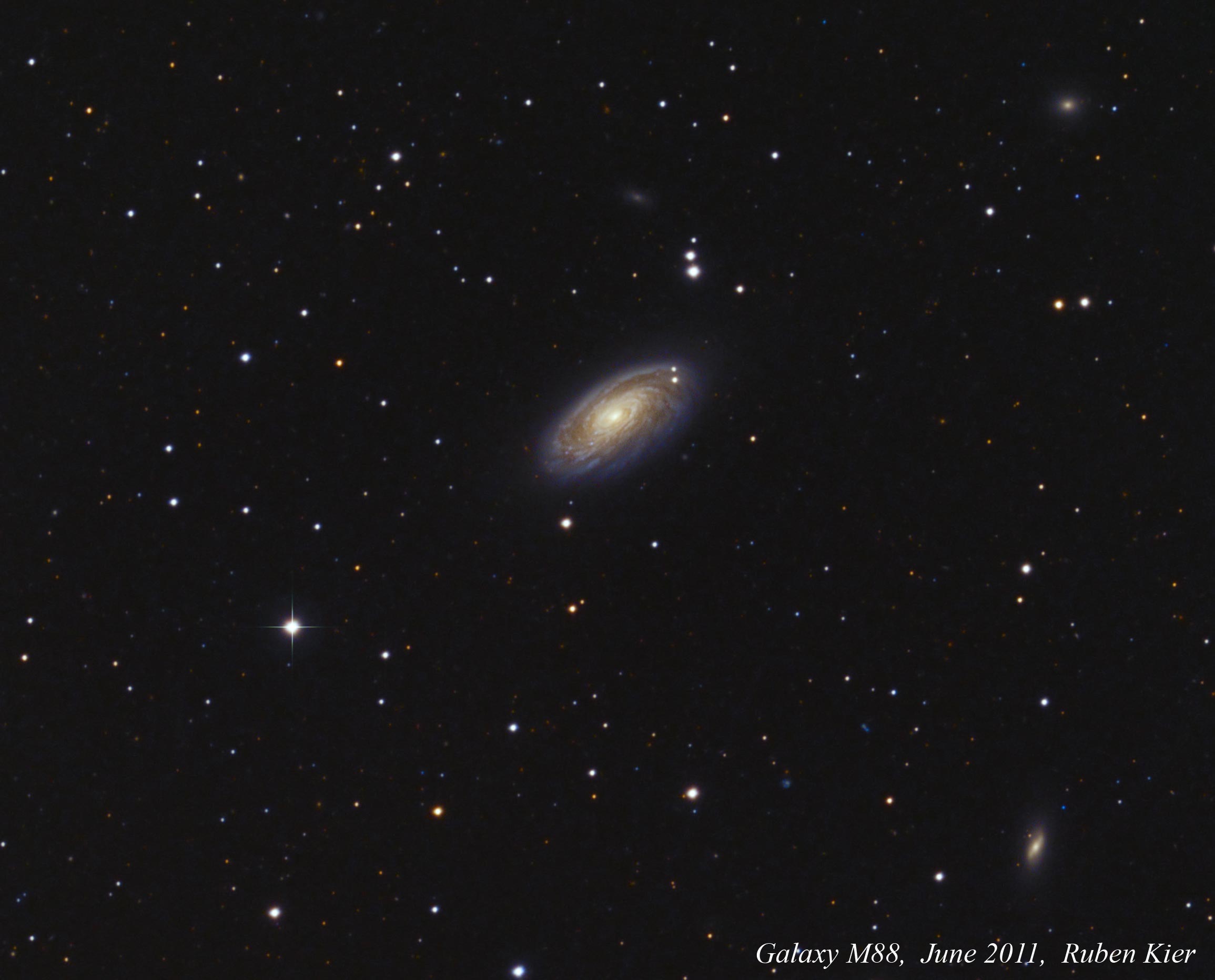 This image combined 60 minutes of clear luminance unbinned with 60 minutes each of red, green, and blue exposures binned 2 x 2.. A QSI583wsg camera was used