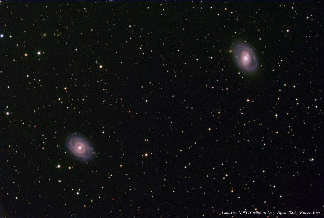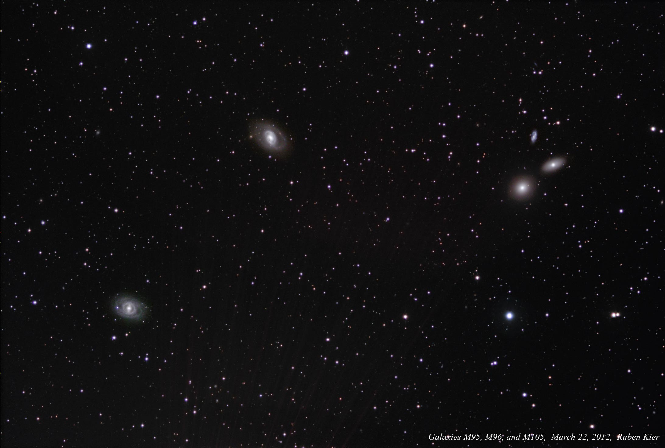 Galaxies M95, M96, and M105 are a group of galaxies within the Leo I group of galaxies 38 million light years away.  All were discovered by Pierre Mechain in 1781, and