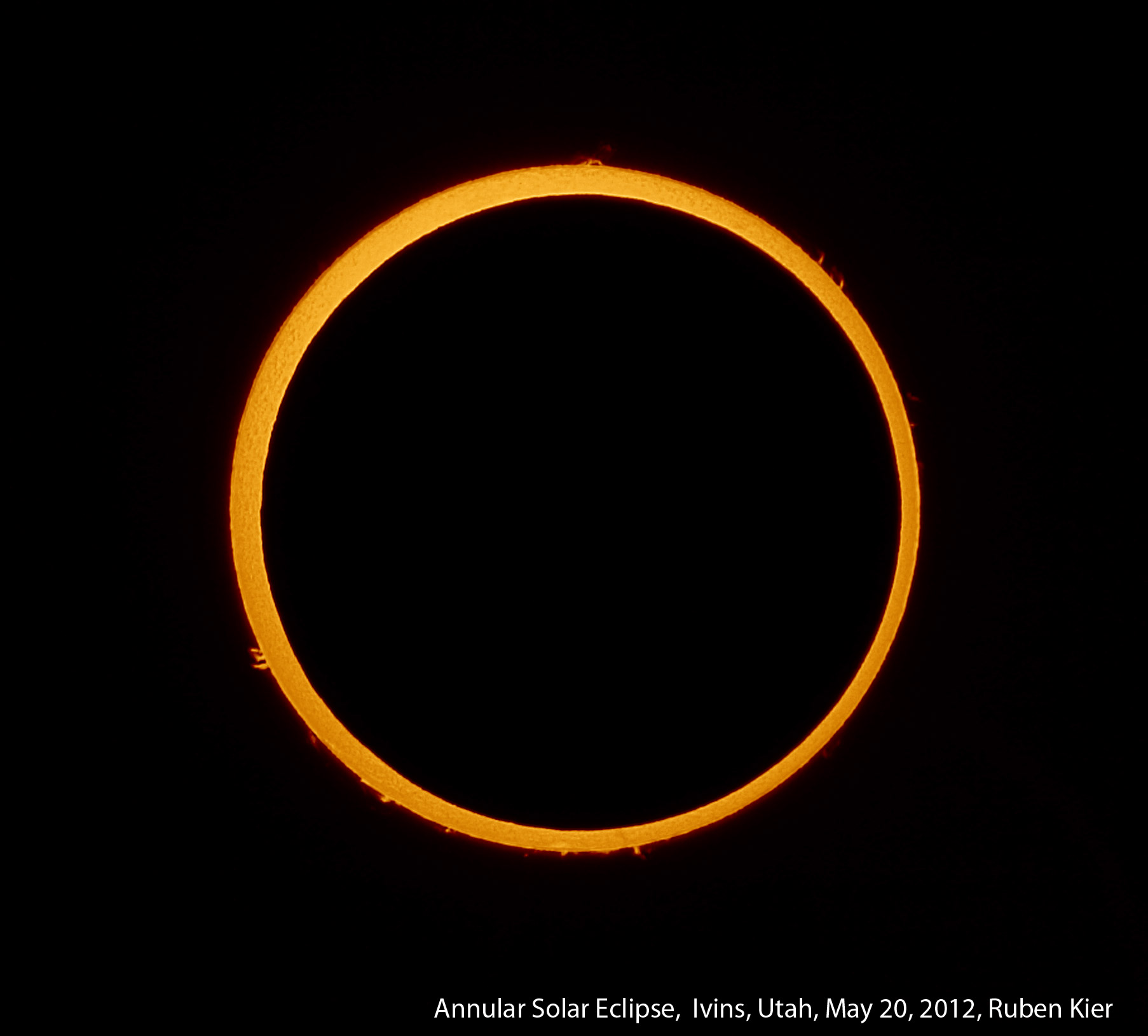 I obtained all photos on this page with a Canon 60Da camera through a Lunt 60 mm solar telescope. The ring of fire of the recent annular eclipse