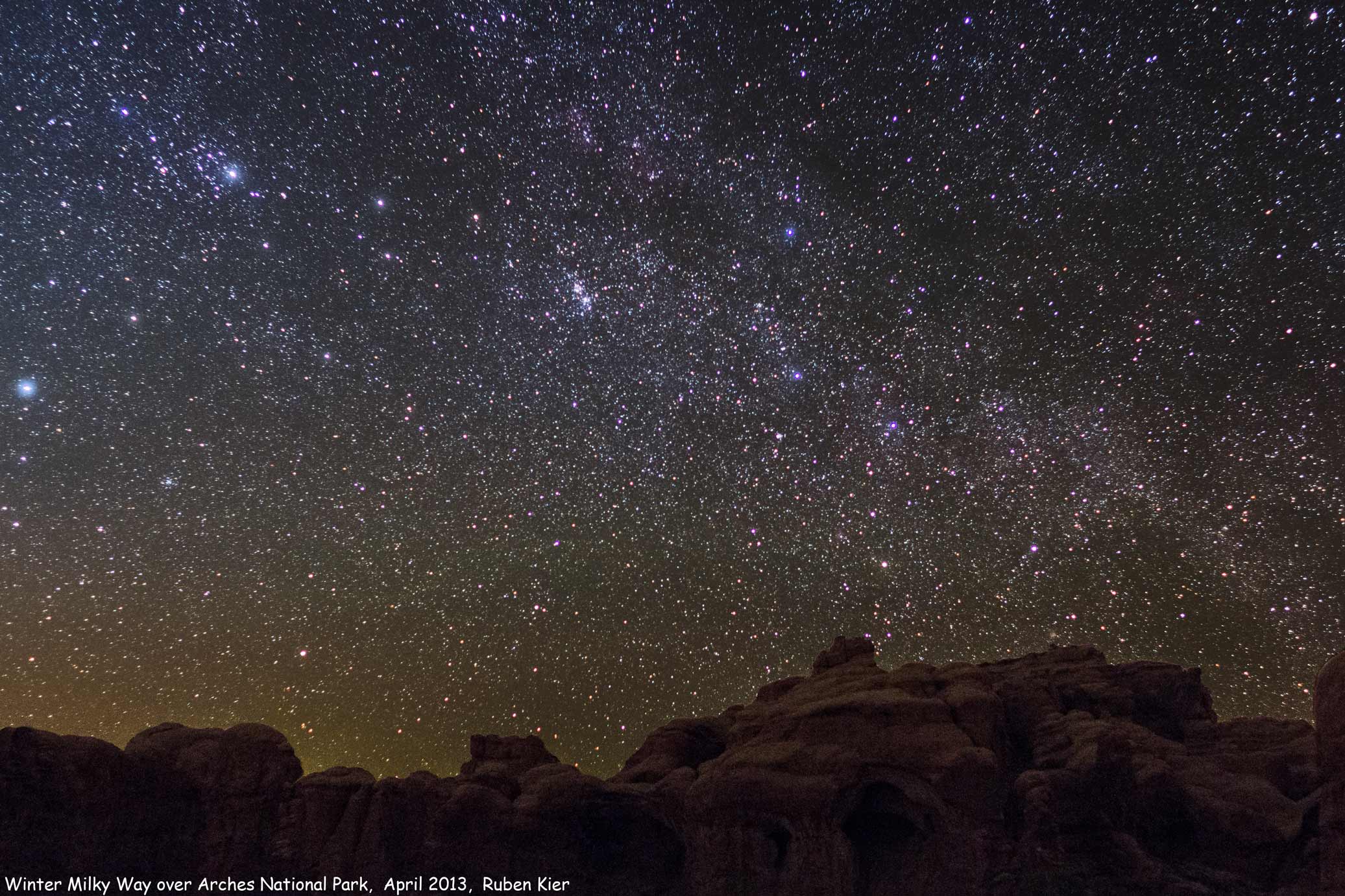 The winter Milky Way is not as bright as the summer Milky Way, yet brims with stars extending from Perseus on the left to
