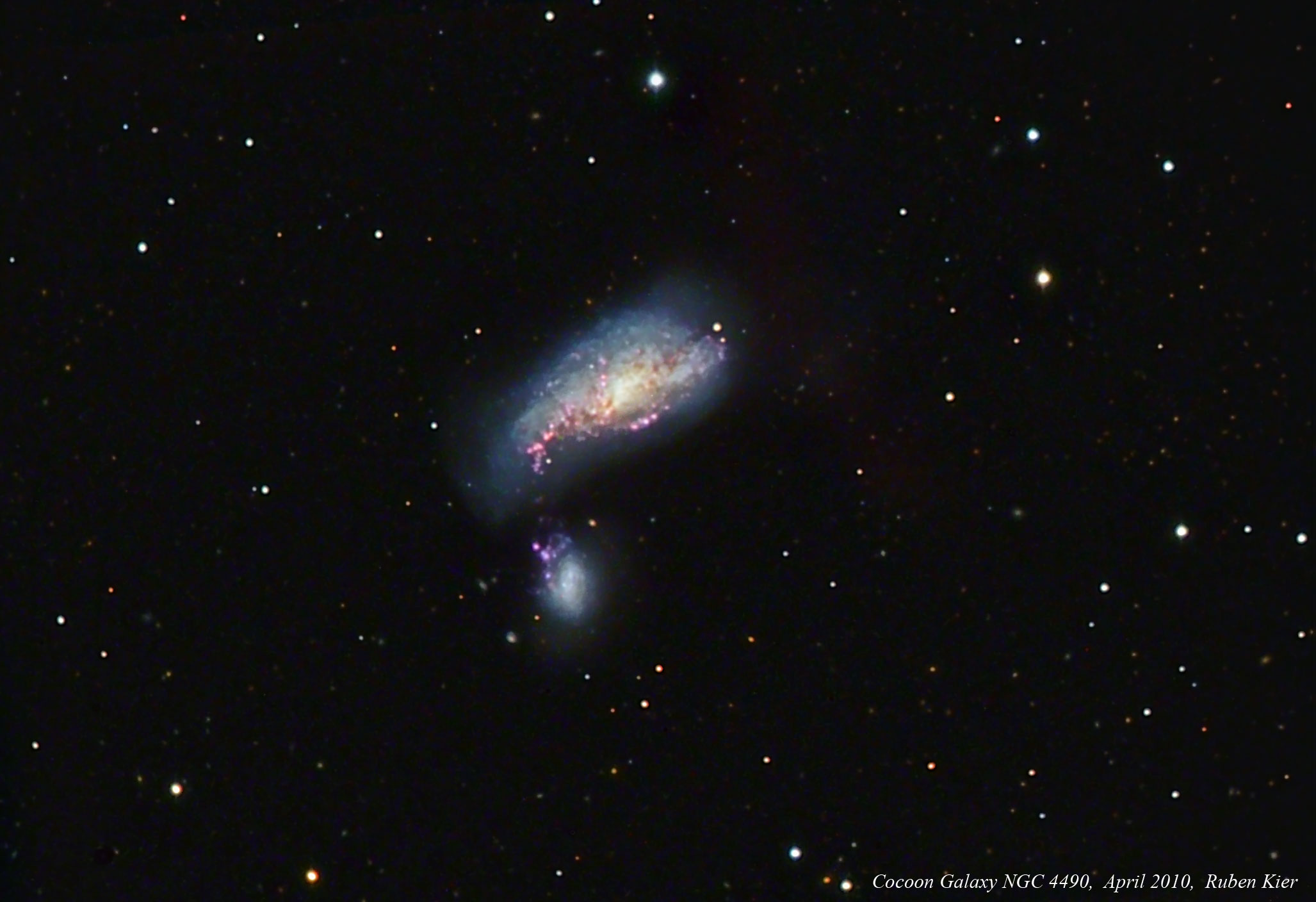 The Cocoon Galaxy NGC 4490 is interacting with the smaller NGC 4485. Both were origninally
